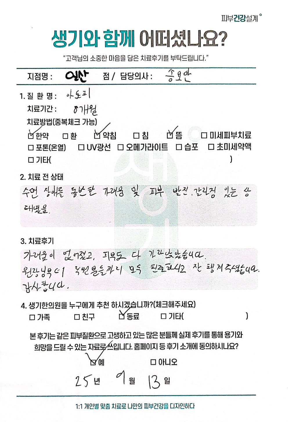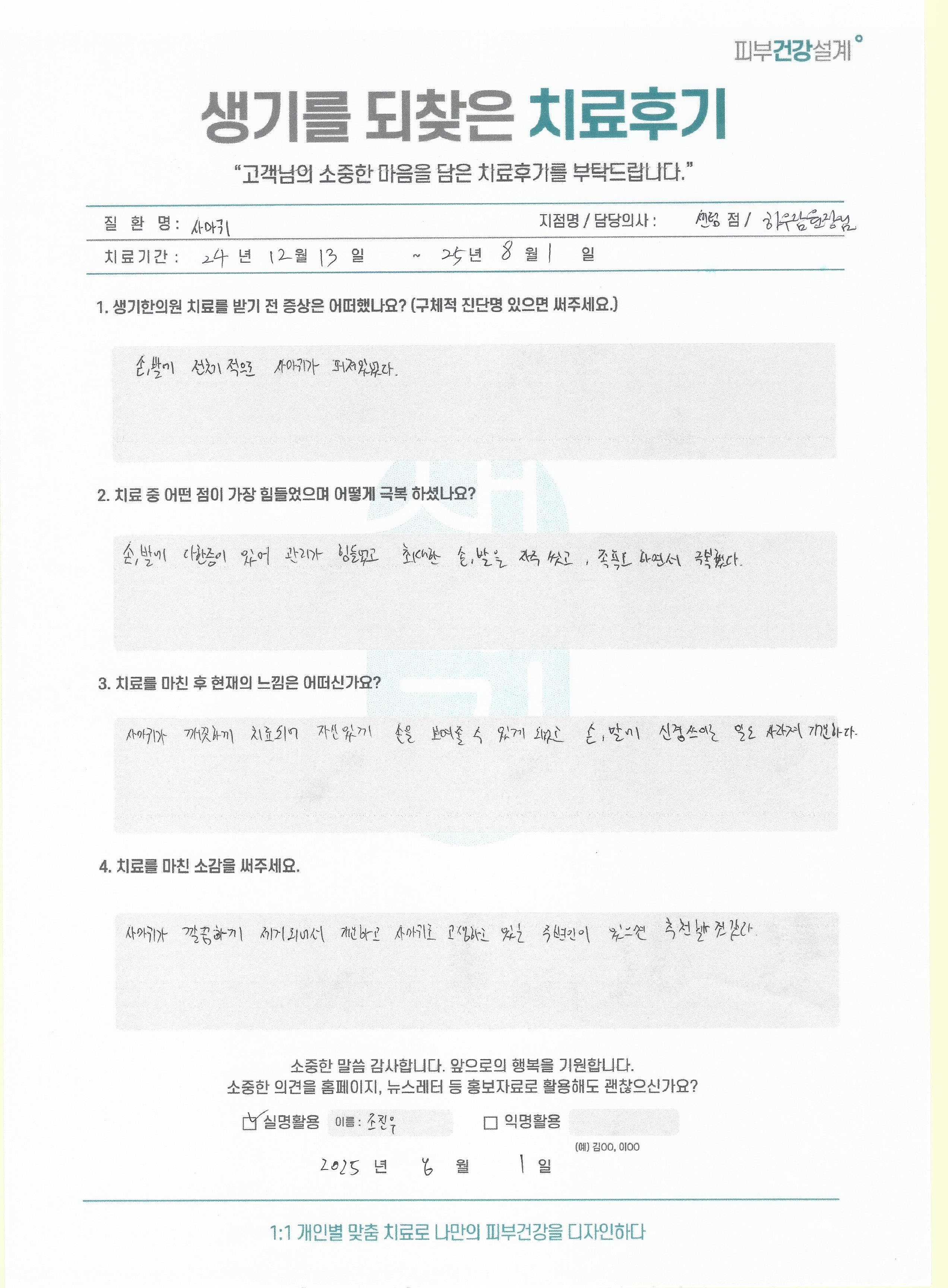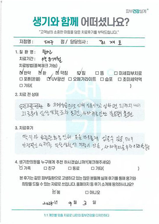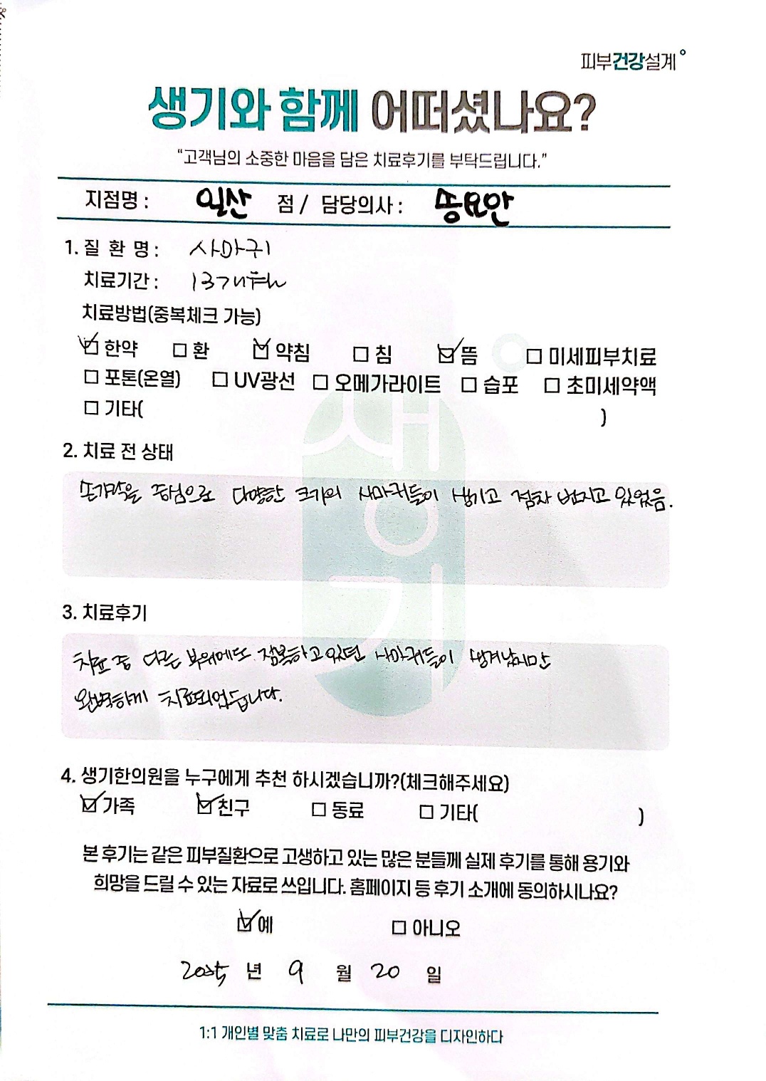 생기한의원과 함께하신 생생한 자필 및 영상 후기를 소개합니다.