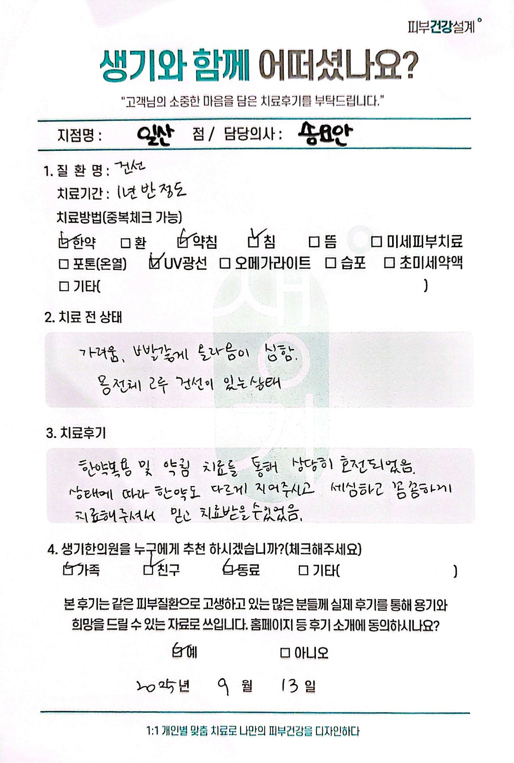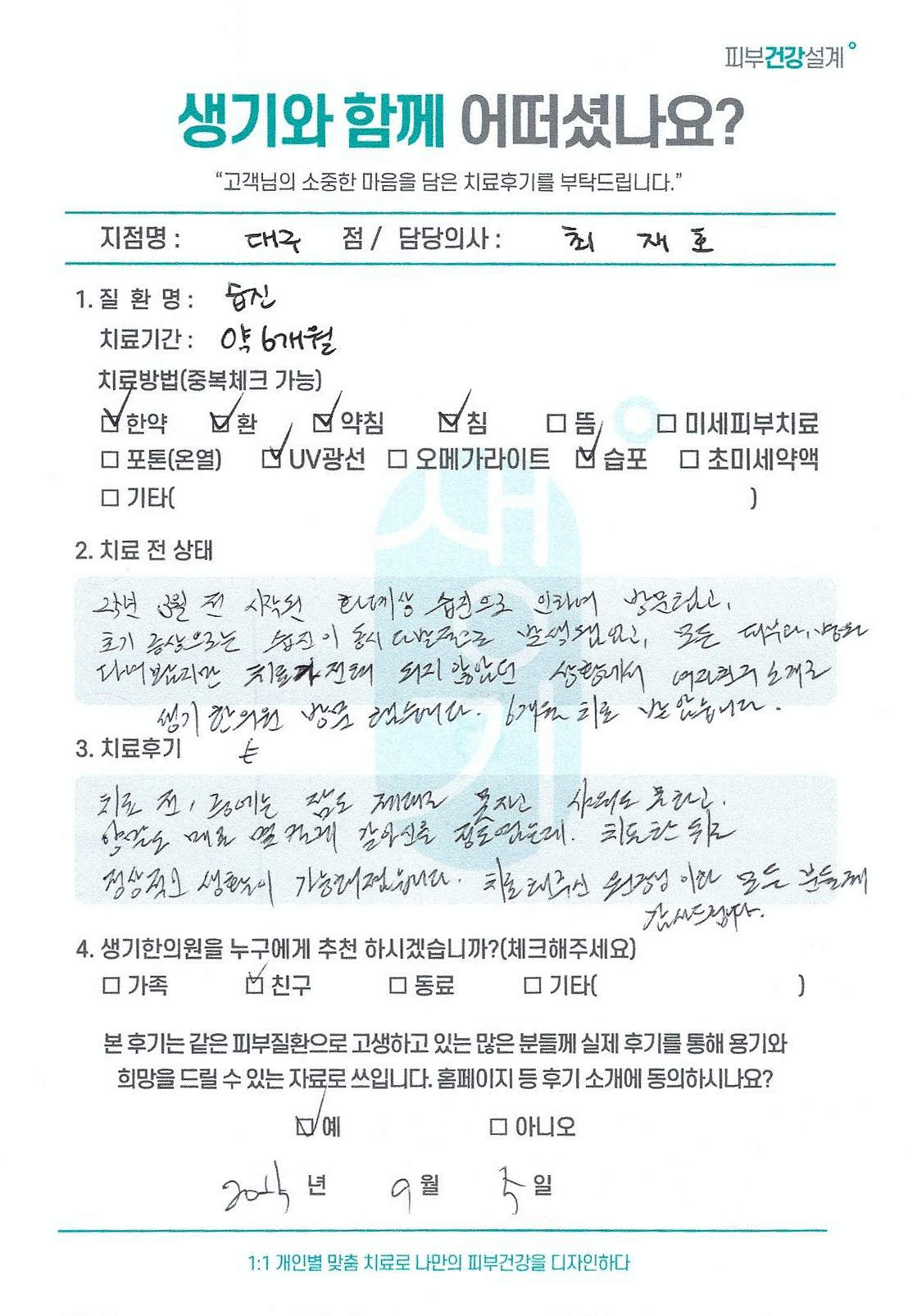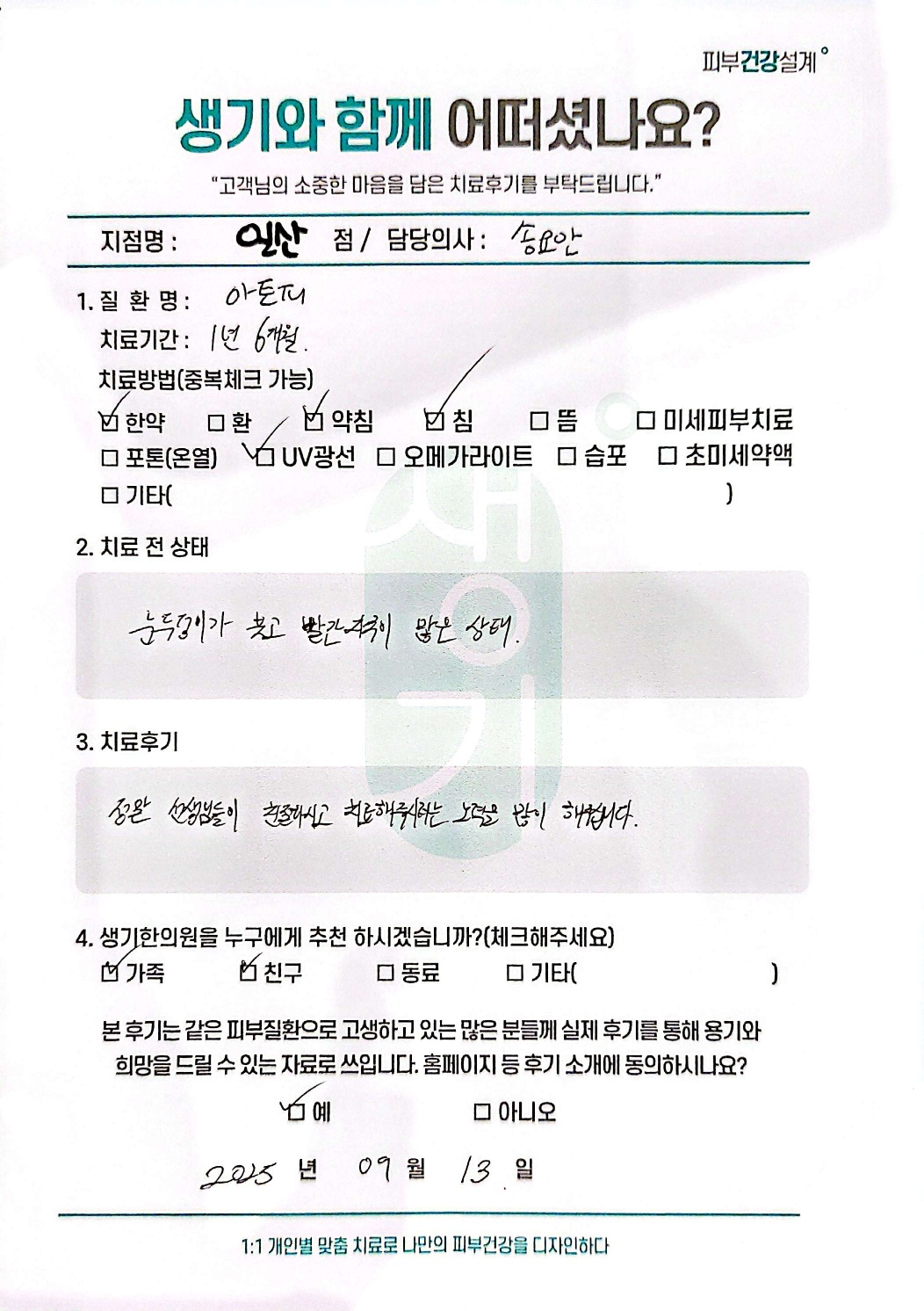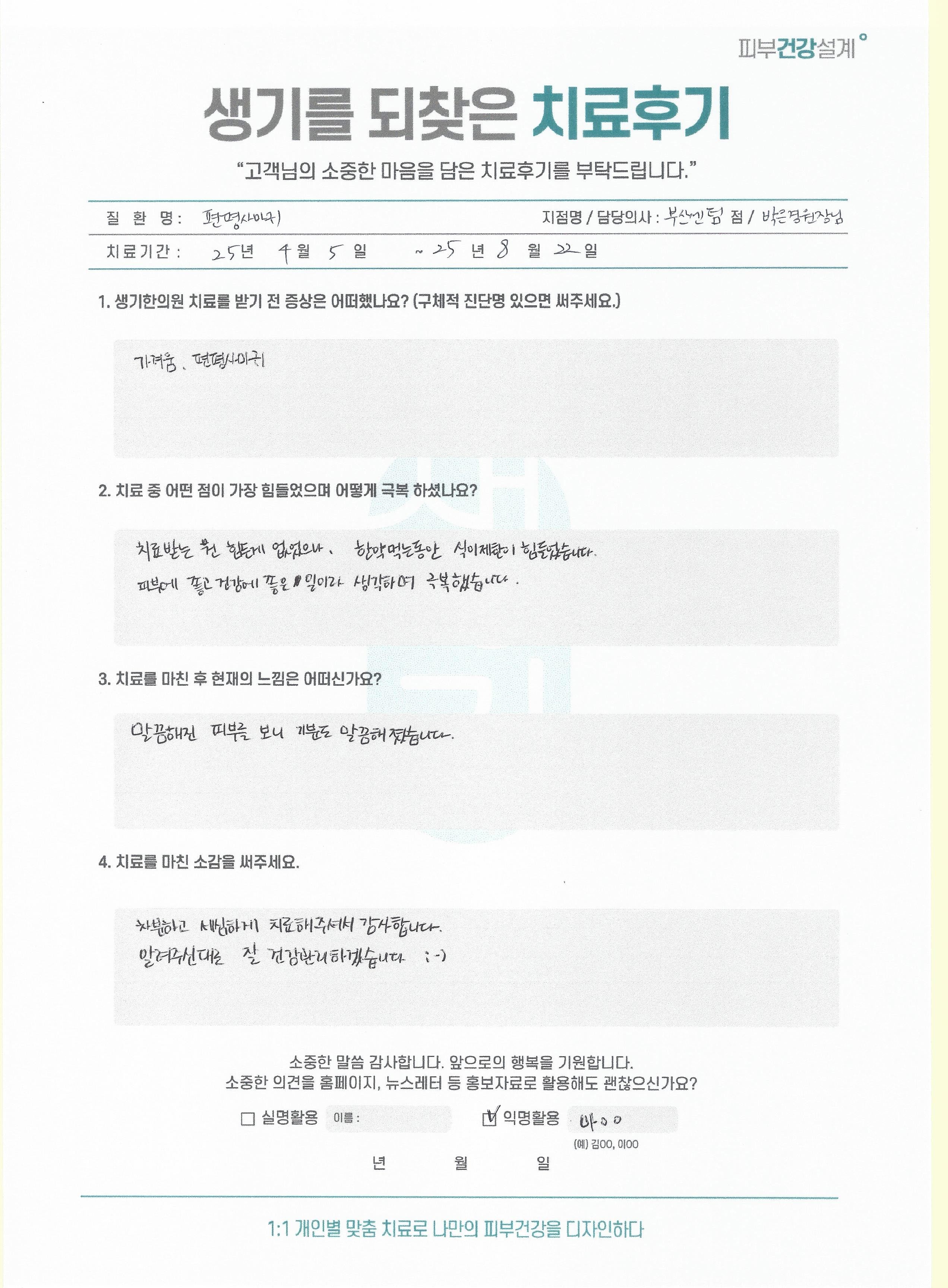 생기한의원과 함께하신 생생한 자필 및 영상 후기를 소개합니다.
