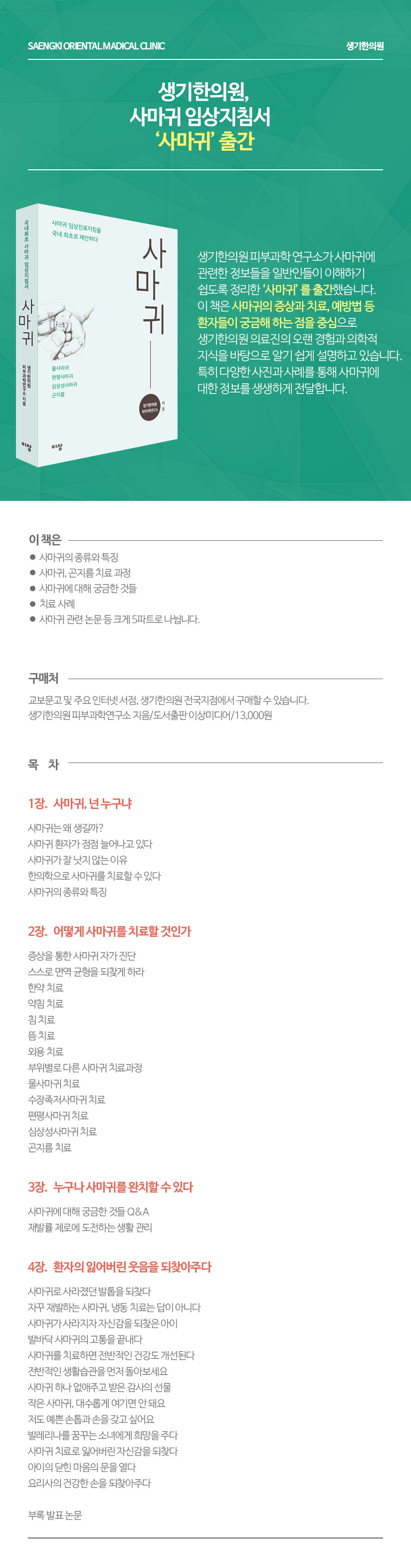생기한의원 사마귀 임상지침서 '사마귀' 출간..