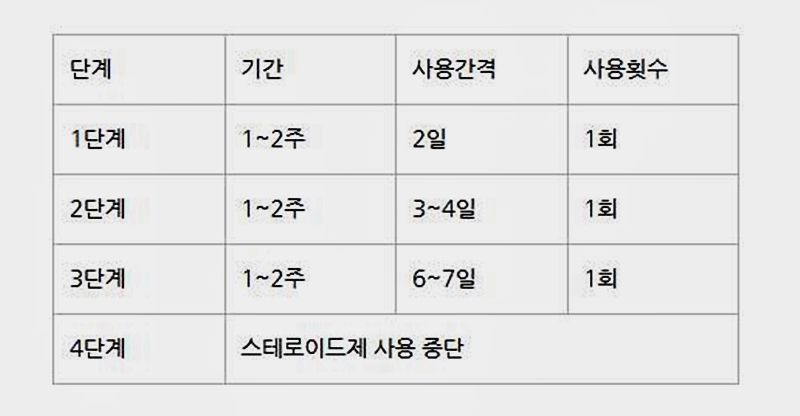 예를 들어 스테로이드제를 매일 1회씩 사용했던 경우라면 이렇게 하시면 됩니다.