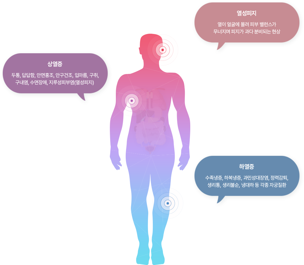 특히, 상열하한증으로 인해 발생한 열성피지 현상이 주요한 요인으로 판단합니다.