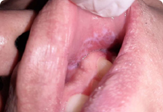 곰팡이균이 원인으로 틀니사용, 면역질환, 항생제 복용 후 발생
